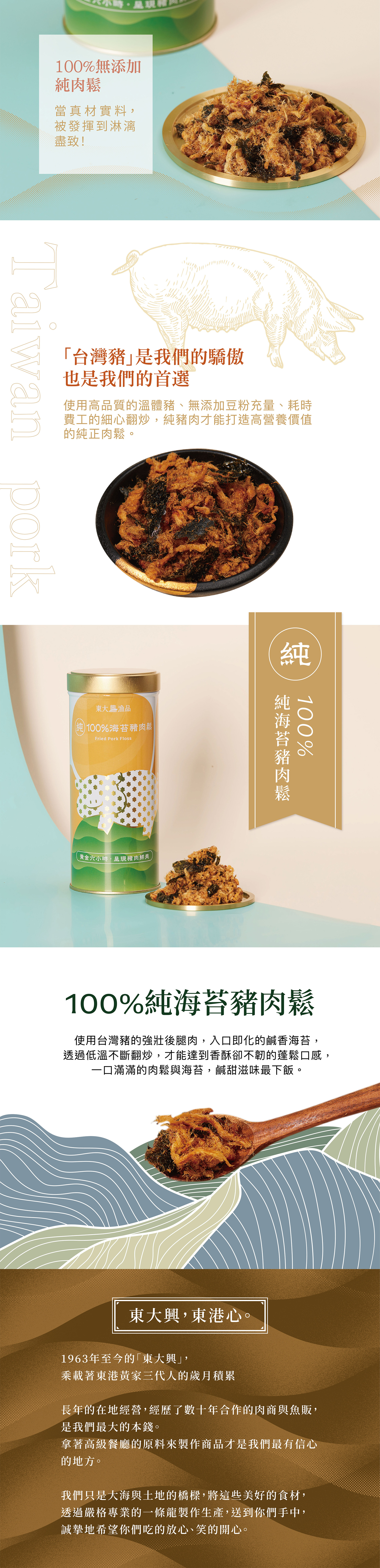| 成分 | 豬肉(台灣)、砂糖、芥花油、純釀醬油、食鹽、海苔 |
