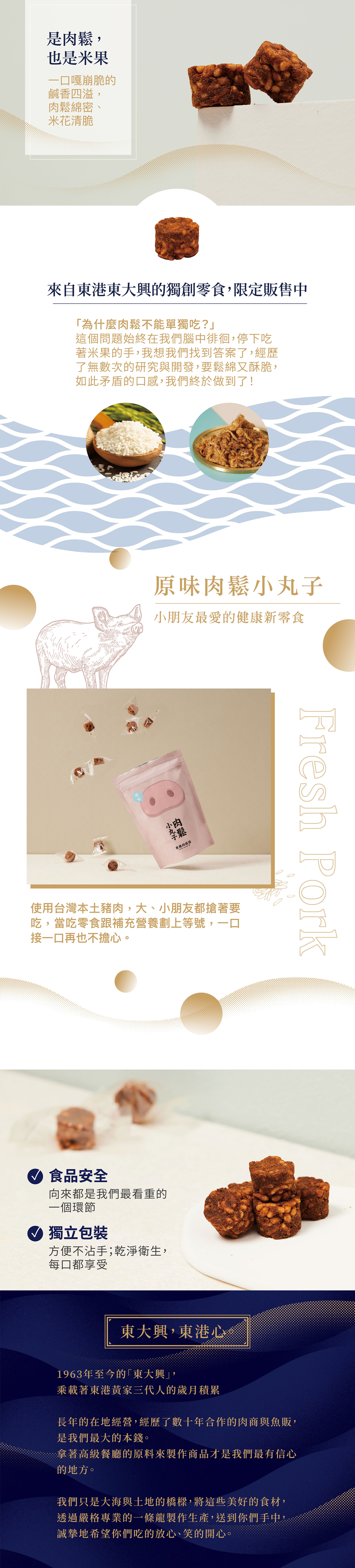 使用東興肉脯舖最熱賣肉鬆與屏東在地小農種植的米所製成的米果,